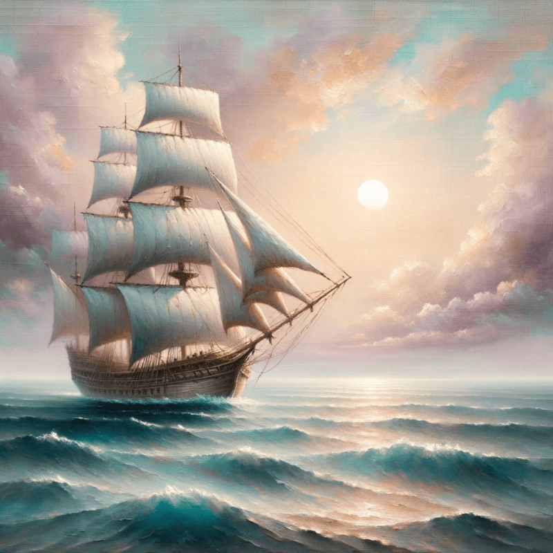 Altes Segelschiff im Morgennebel und leichter Seegang
