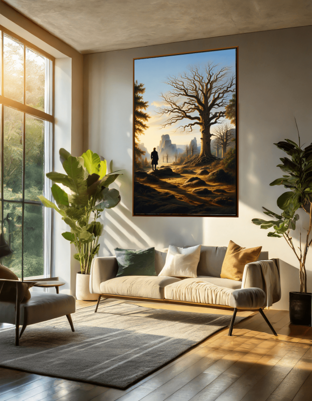Ein handgemalte Kunstwerk auf Leinwand im Stil von Caspar David Friedrich. Das Gemälde strahlt eine besinnliche und meditative Stimmung aus. Es ladet den Betrachter ein, über die Schönheit der Natur, den Lauf der Zeit und die Beziehung zwischen Mensch und Natur nachzudenken. Das wunderschöne, handgemalte Gemälde zeigt in seine romantische Betonung der Erhabenheit der Natur sowie die spirituellen Verbindung zwischen Mensch und Natur.Das Gemälde ist keine Druck oder Reproduktion, sondern handgemalte Kunstwerk. Wunderschönes, lebendiges Gemälde, das Ihren Räumen Farbe verleiht. Aufwendig vom Künstler für Sie individuell auf hochwertiger Künstlerleinwand gemalt. Dafür benötigt der Künstler ca.6 Wochen!