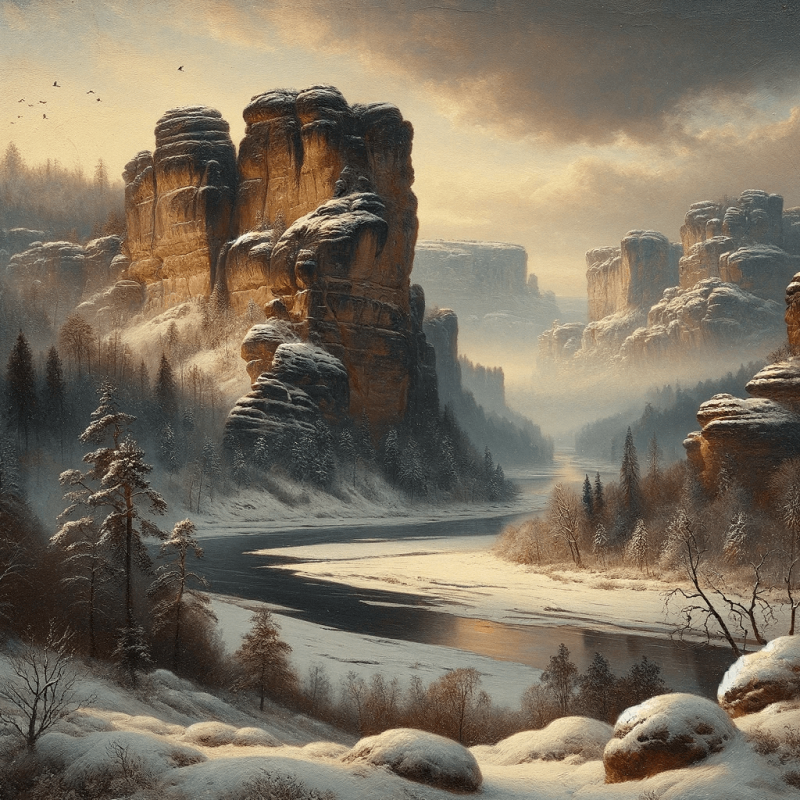 Berglandschaft sächsische Schweiz an der Elbe im Winter 2