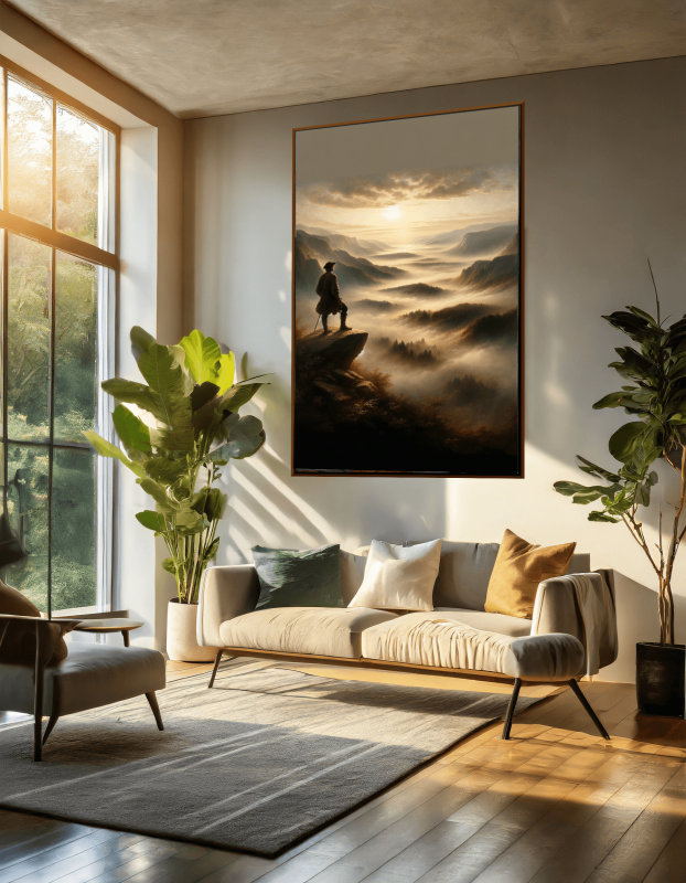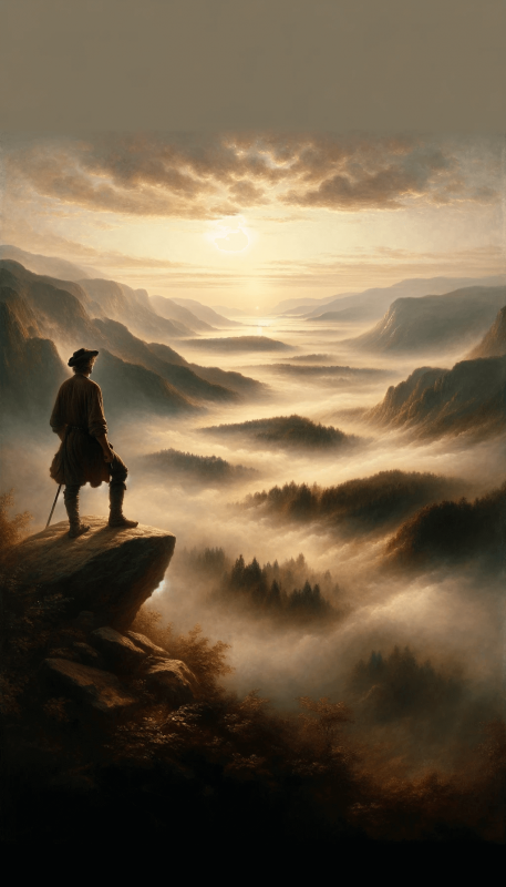 Ein handgemalte Kunstwerk auf Leinwand im Stil von Caspar David Friedrich. Das Gemälde strahlt eine besinnliche und meditative Stimmung aus. Es ladet den Betrachter ein, über die Schönheit der Natur, den Lauf der Zeit und die Beziehung zwischen Mensch und Natur nachzudenken. Das wunderschöne, handgemalte Gemälde zeigt in seine romantische Betonung der Erhabenheit der Natur sowie die spirituellen Verbindung zwischen Mensch und Natur.Das Gemälde ist keine Druck oder Reproduktion, sondern handgemalte Kunstwerk. Wunderschönes, lebendiges Gemälde, das Ihren Räumen Farbe verleiht. Aufwendig vom Künstler für Sie individuell auf hochwertiger Künstlerleinwand gemalt. Dafür benötigt der Künstler ca.6 Wochen!