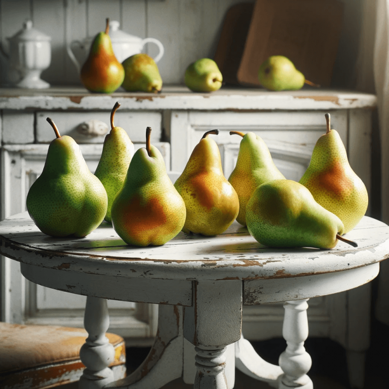 Birnen auf einem alten Tisch