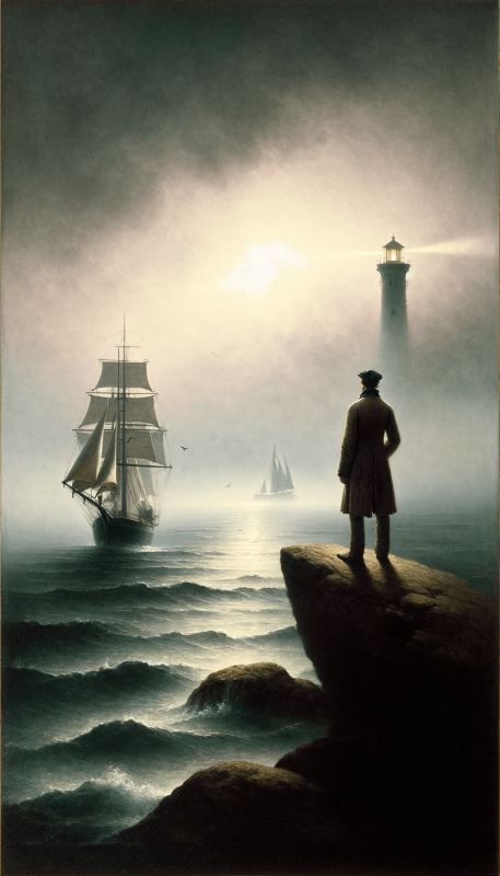 Ein handgemaltes Kunstwerk auf Leinwand im Stil von Caspar David Friedrich. Das wunderschöne, handgemalte Gemälde zeigt in seine romantische Betonung der Erhabenheit der Natur sowie die spirituellen Verbindung zwischen Mensch und Natur.Das Gemälde ist keine Druck oder Reproduktion, sondern handgemalte Kunstwerk. Wunderschönes, lebendiges Gemälde, das Ihren Räumen Farbe verleiht. Aufwendig vom Künstler für Sie individuell auf hochwertiger Künstlerleinwand gemalt. Dafür benötigt der Künstler ca.6 Wochen!