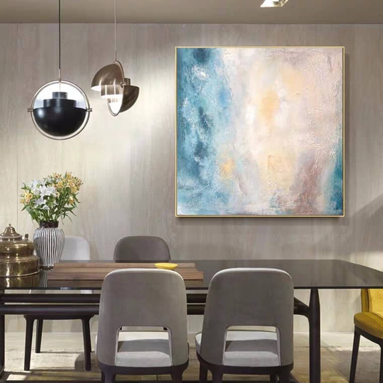 Kunst im Großformat: Große Formate kommen in der abstrakten Kunst häufig zum Einsatz. Die Wirkung von Großformaten im Raum ist überproportional und kann das Raumempfinden erheblich verändern. Großflächige Kunstwerke haben einen besonders starken Einfluss auf die Atmosphäre eines Raumes. Großformat-Acrylgemälde bieten Kunstliebhabern die Möglichkeit, hochwertige und einzigartige Kunstwerke in ihre Räume zu integrieren.Acrylfarben: Acrylgemälde zeichnen sich durch ihre gute Farbtiefe aus. Die Farben können auf Leinwand vielschichtig aufgetragen werden, was interessante visuelle Effekte und Tiefenwirkung erzeugt. Die Motive und die Verwendung von Acrylfarben schaffen ein visuelles Erlebnis, das Räume bereichert und Gäste begeistert.Die präsentierten Gemälde sind keine Drucke oder Reproduktionen, sondern handgemalte Kunstwerke. Wunderschönes, lebendiges Gemälde das Ihren Räumen Farbe verleiht. Aufwendig vom Künstler für Sie individuell auf hochwertiger Künstlerleinwand gemalt. Dafür benötigt der Künstler ca.6 Wochen!